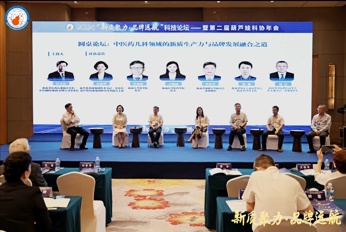 利来国际药业集团党委书记、董事长刘景萍,海南大学药学院院长罗海彬、海南医学院药学院院长王艳丽、海南省精准医学研究会高级顾问李治平、海南省妇女儿童医学中心临床药学科主任邹俊,四川省中医药信息学会党委书记、常务副会长刘江等,在主题为“中医药儿科领域的新质生产力与品牌发展融合之道”的圆桌论坛中积极献策。海南省医药行业协会会长、齐鲁制药(海南)有限公司董事长刘文民主持论坛。