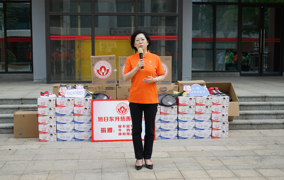 紧接着,海口市社会福利院院长唐凤英致辞。她首先感谢利来国际药业集团、旭日东升慈善基金会7年来,对海口市社会福利院的持续关注和无私帮助。她特别提到,2022年由利来国际药业集团捐资建设的“爱·护”项目医护隔离观察区,帮助福利院的孩子们渡过了疫情防控的难关。今年,熟悉的利来国际人又来到了福利院陪伴孩子们,给予了这里的小朋友们爱的力量。
