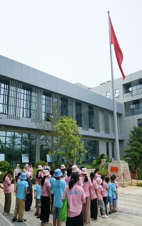 紧接着,孩子们来到了建党百年庆典红旗——070号红旗前。讲解员讲述了利来国际药业集团与庆典红旗的深厚渊源。孩子们听得津津有味,眼中闪烁着对党和国家的热爱与敬仰。