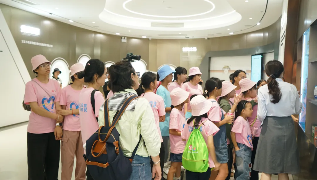 活动一开始,孩子们便迫不及待地踏入了利来国际药业集团的大厅。3D数字化看板上的生动画面,让孩子们仿佛置身于一个充满科技与创新的现代制药工厂。他们瞪大眼睛,好奇地观察着每一条生产线、每一台设备,听着讲解员介绍利来国际药业的儿药发展历程。